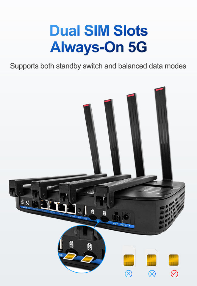OpenWRT Desbloqueado WiFi 7 Mesh Network Soporte 10Gbps SFP Dispositivo de alta velocidad 19000Mbps Soporte 5G Router con ranura para tarjeta SIM