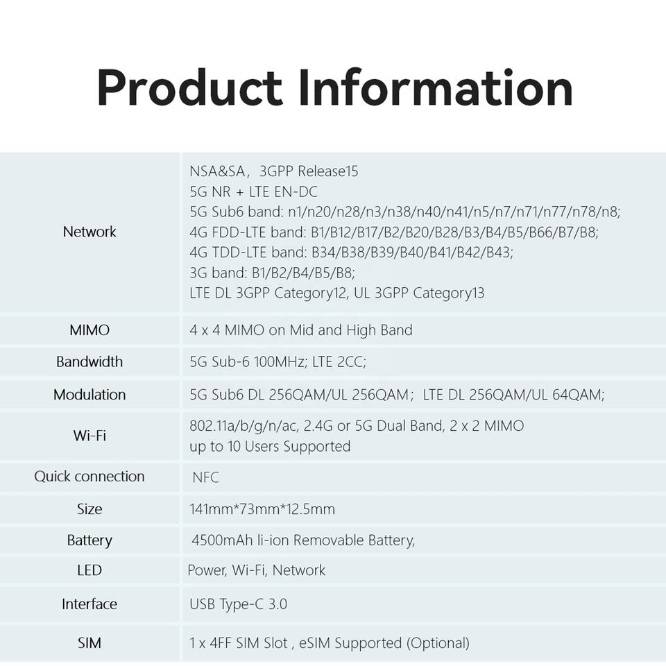Router ZTE 5G Desbloqueado, Router WiFi Móvil ZTE U30 Air 5G (4500mAh, NFC)