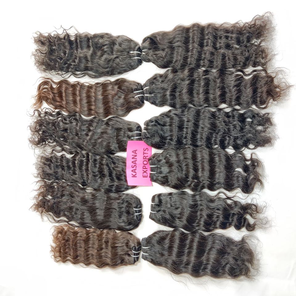 Sin procesar 100% cutícula alineada Procesamiento Natural Ninguno Paquetes al por mayor Pelucas delanteras de encaje indio rizado Extensiones de cabello humano