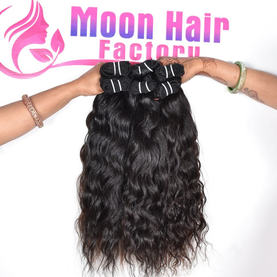 Extensiones de Cabello Humano Natural Virgen Indio Sin Procesar, Color Negro Ondulado, Cutícula Alineada, Aspecto Natural, Nueva Tendencia de Exportación