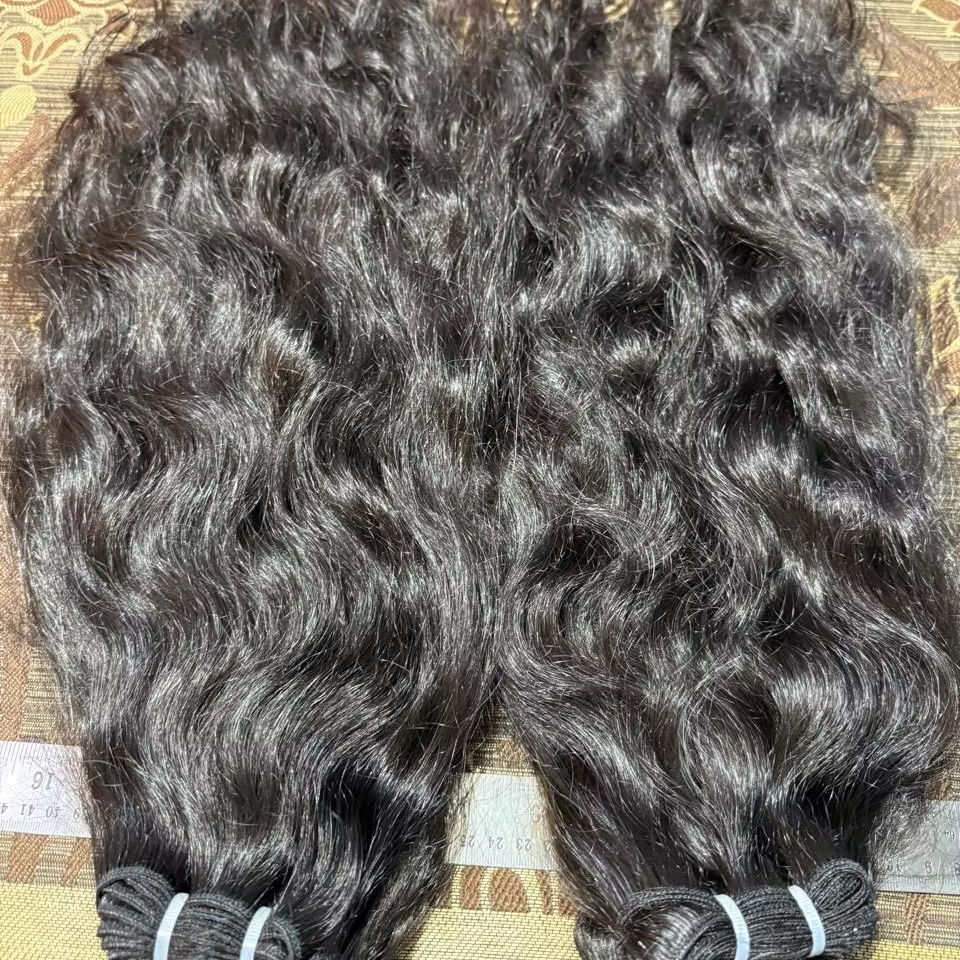Extensiones de cabello humano virgen indio Remy negro ondulado rizado sin procesar Donante de máquina de trama doble Propiedad sin desprendimiento-Venta al por mayor