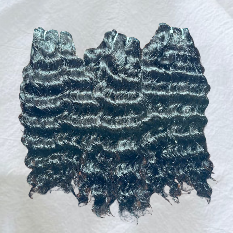 Extensiones de Cabello Remy Indio Virgen Natural Sin Procesar, Ondulado Profundo, Ondas Sueltas, 28 Pulgadas de Longitud Estirada, Doble Trama a Máquina
