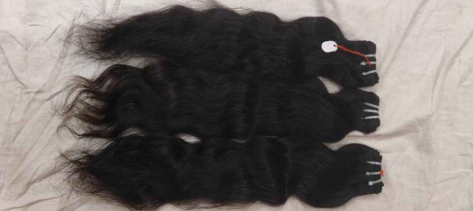 Mechones de pelo de mujer negro virgen rizado ondulado natural sin procesar máquina de vendedor barato pelos humanos de templo indio de doble trama