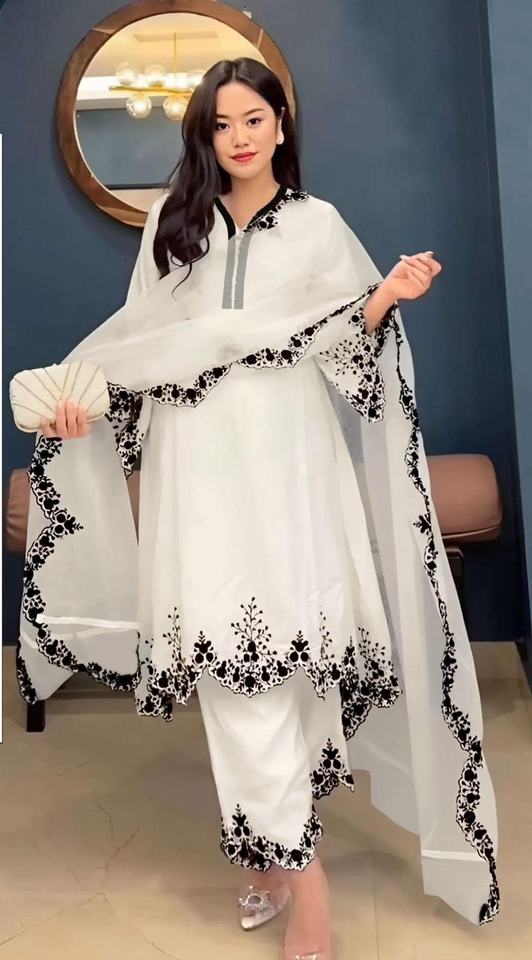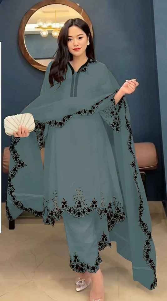 PENT FEBRICO:Heavy Georgette with havy Emb. Work Con santoon interior