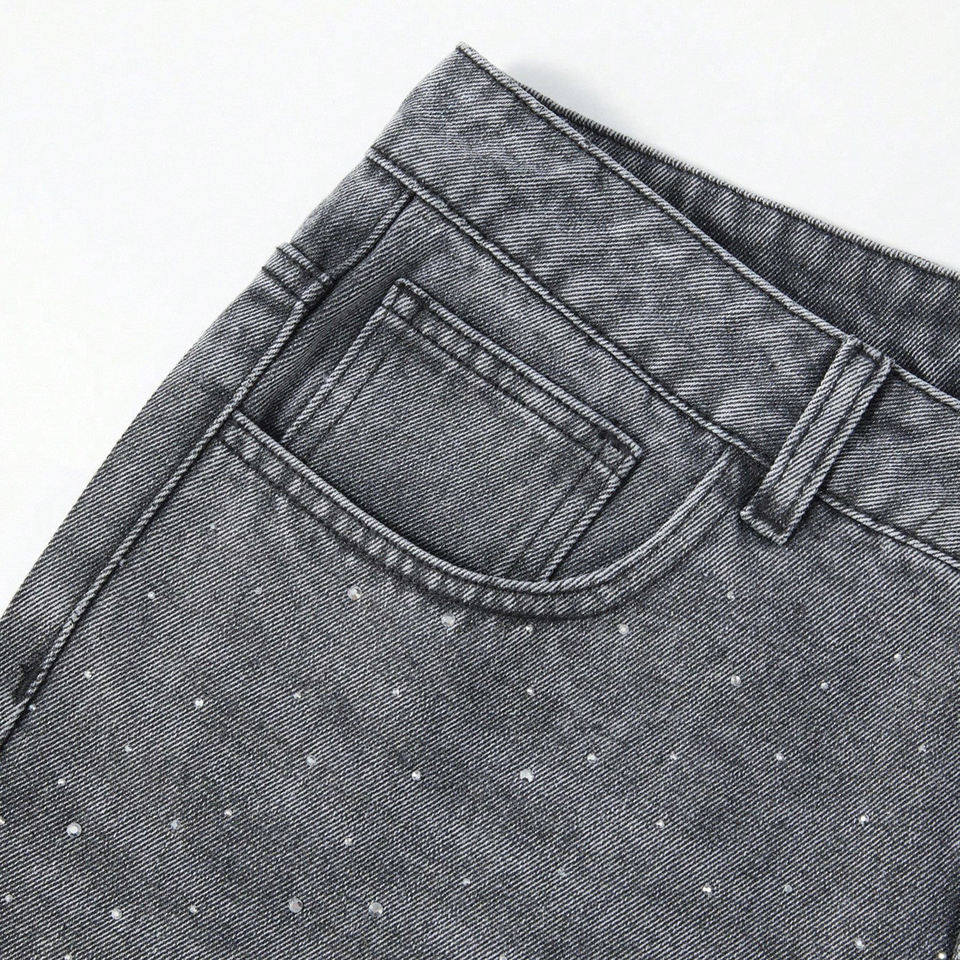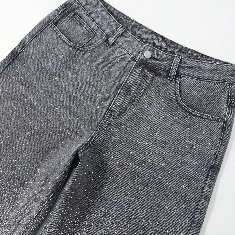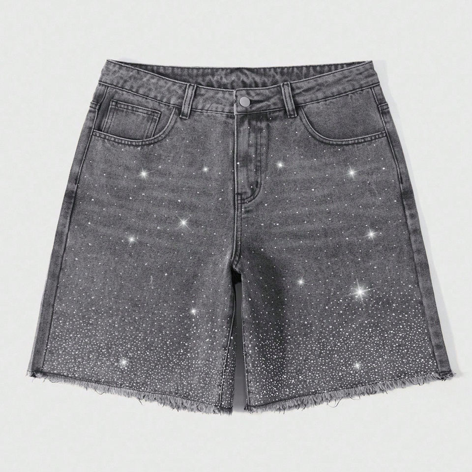 Pantalones Cortos de Mezclilla para Hombre con Pedrería y Dobladillo Deshilachado, Estilo Urbano, Colección Primavera-Verano