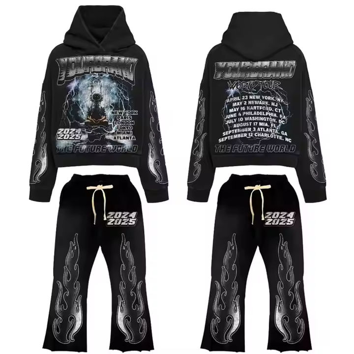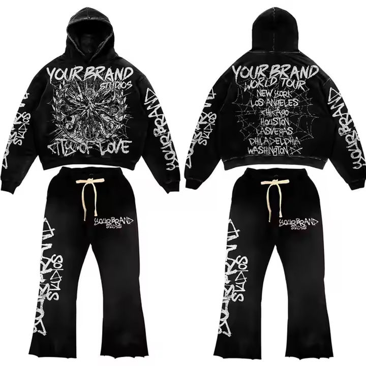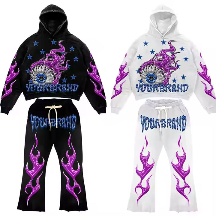 Conjunto de chándal Up Felt Impex personalizado para hombre, estilo urbano, con estampado 3D en relieve, sudadera con capucha y pantalón jogger, con bajo sin rematar y gráficos.