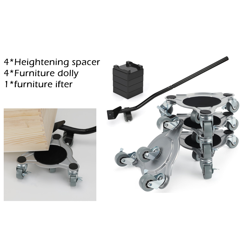 Ruedas para Mover Muebles Grandes, Paquete de 4, Rotación de 360° con Freno, Panel de Acero Reforzado de 1200 LBS, Triangulares
