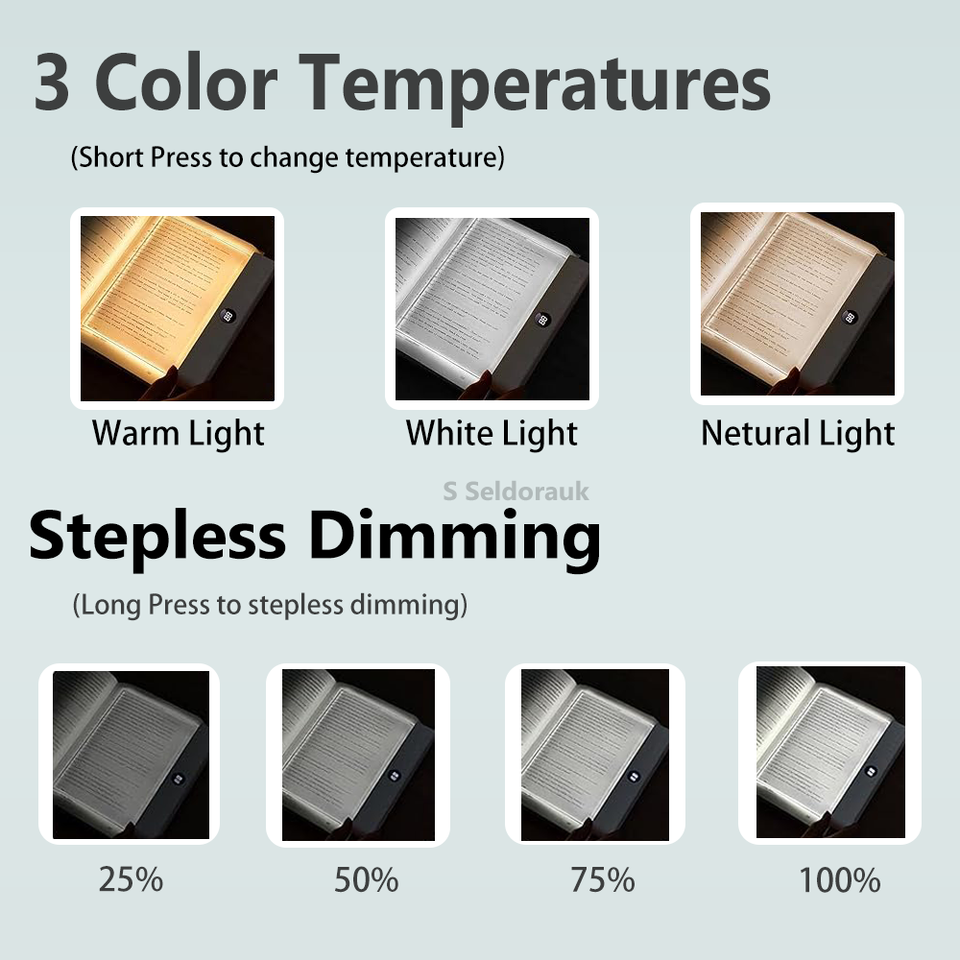 Lámpara de Lectura LED Recargable por USB, Tamaño A4, con Protección Ocular, Brillo Ajustable, para Dormitorio y Hogar