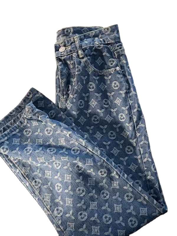 Mejora tu guardarropa con diseños personalizados y acabados de tela de alta calidad para tus pantalones vaqueros con estampado único.