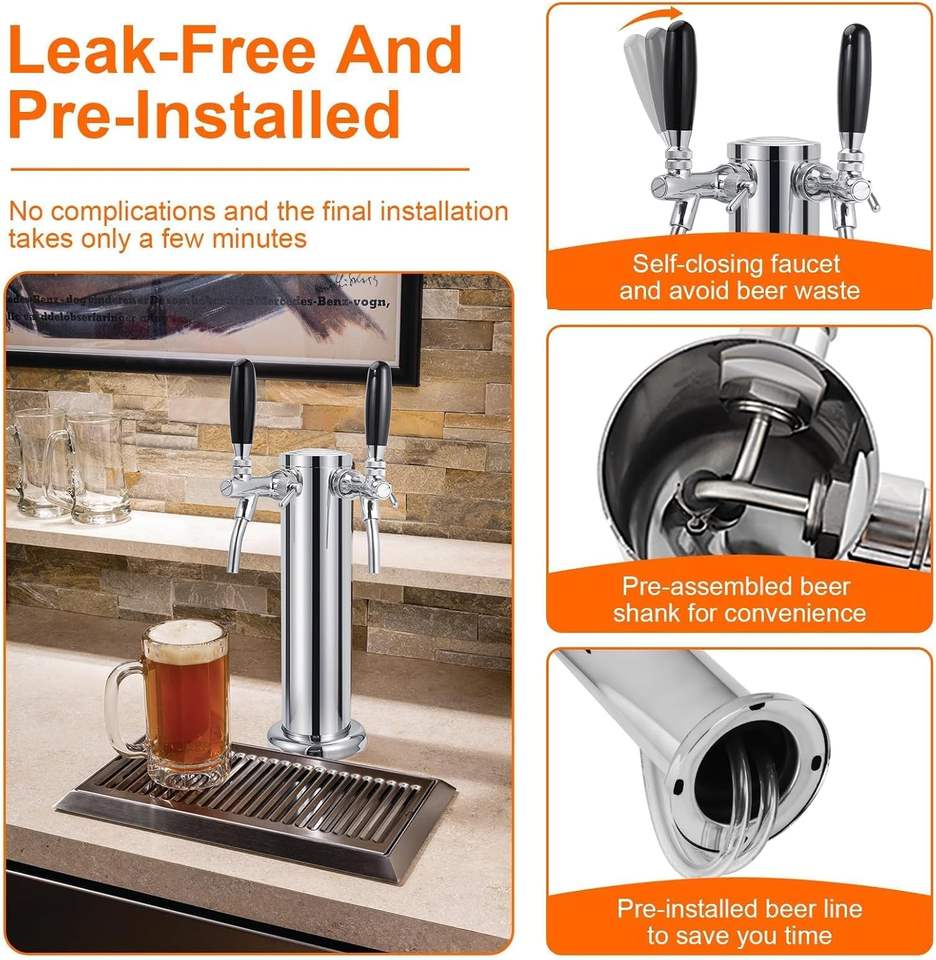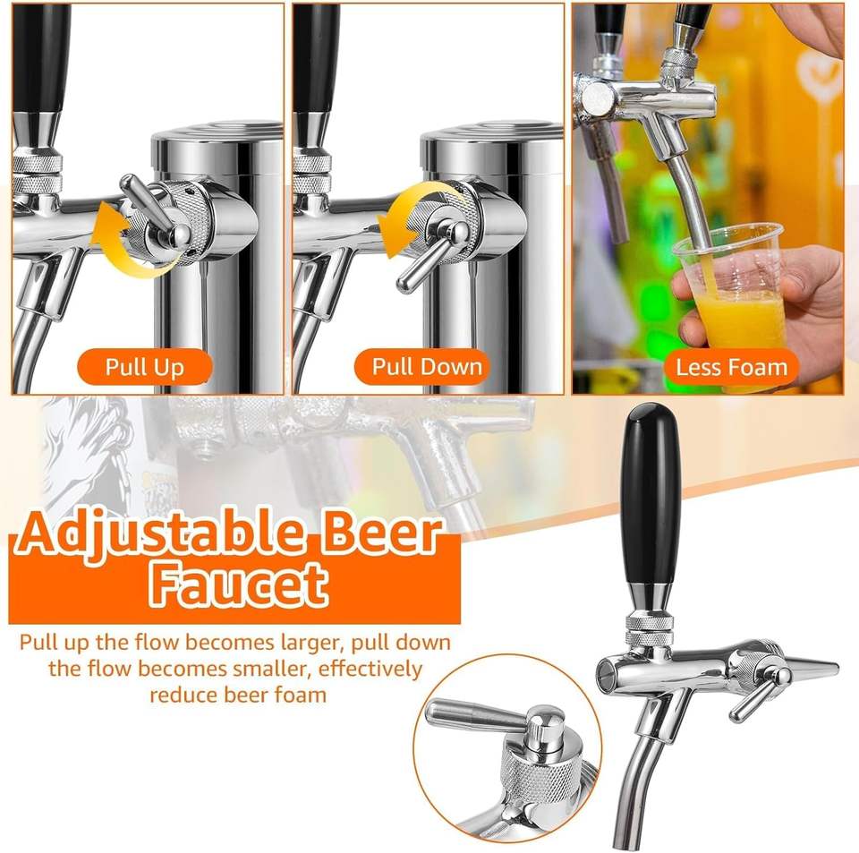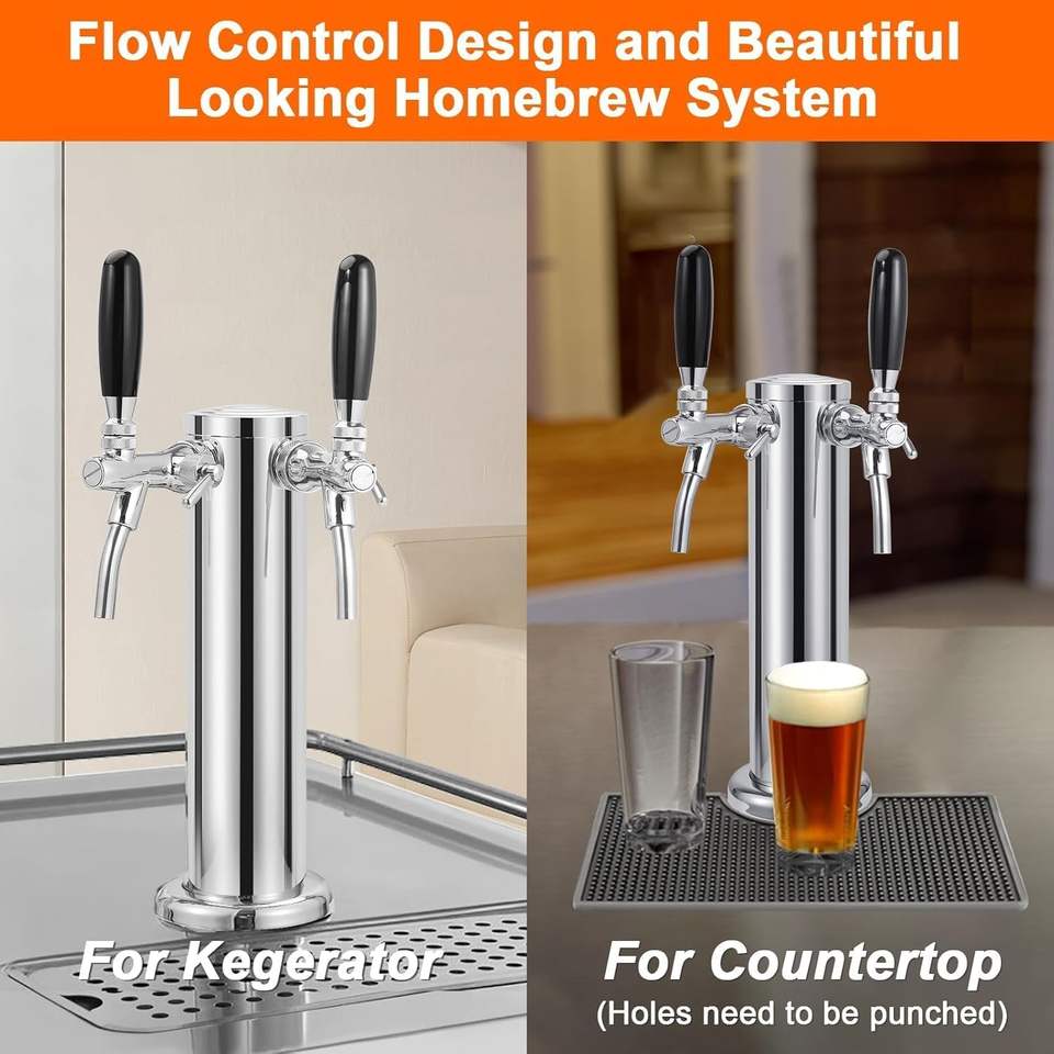 Piezas de kegerator de torre de cerveza de doble grifo con control de flujo ajustable mejorado con kit de instalación completo