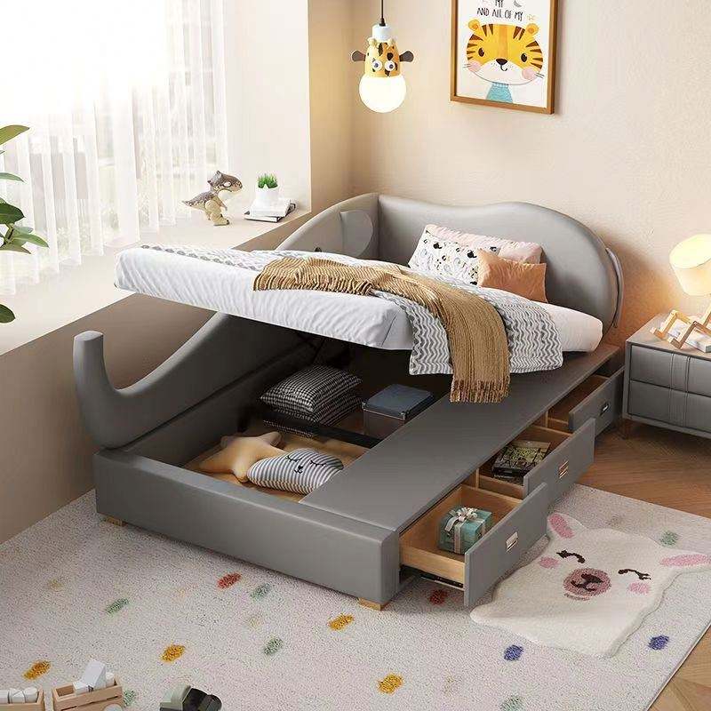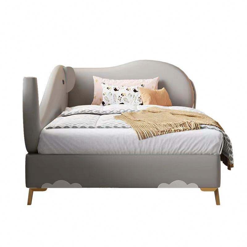 Cama tapizada para niños con diseño de elefante de dibujos animados Cama flotante de madera maciza con luces para niños Niñas Estilo princesa