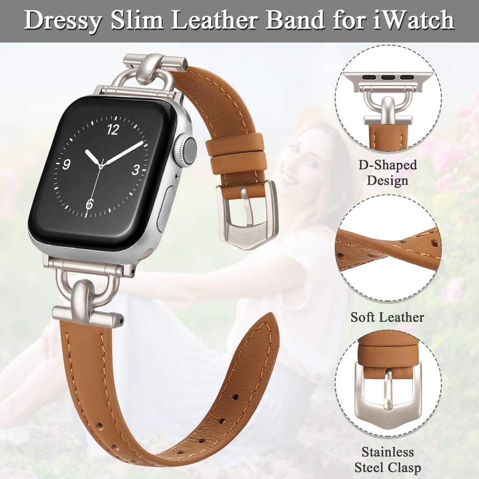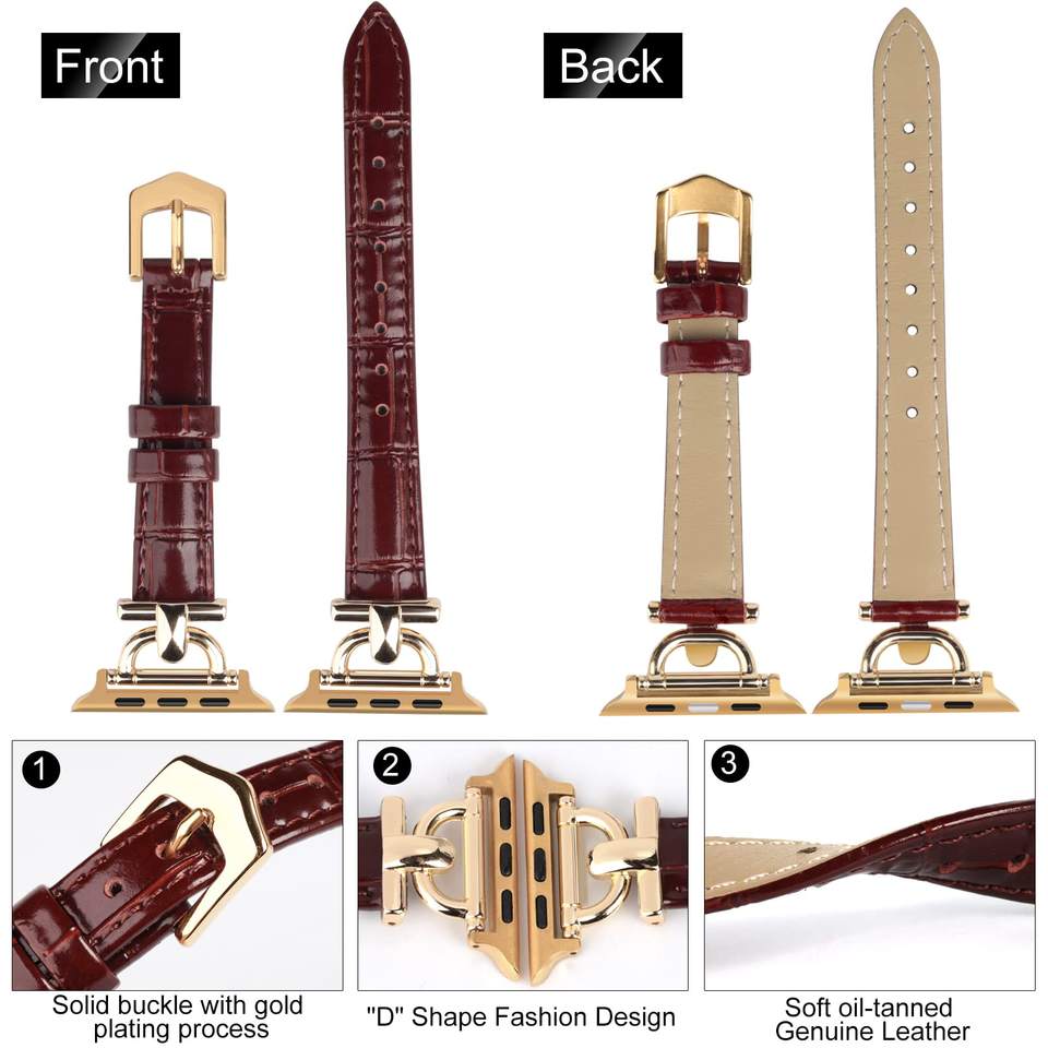 Correa de reloj Upro nueva en stock, de cuero genuino con hebilla de metal en forma de D para Apple Watch, correa de moda para mujer para iWatch.