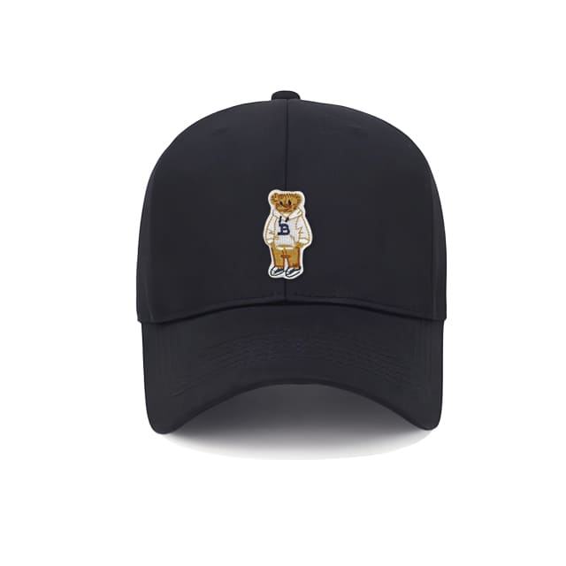 Gorra de béisbol de moda urbana con bordado de oso de sudadera beige para estudiantes universitarios