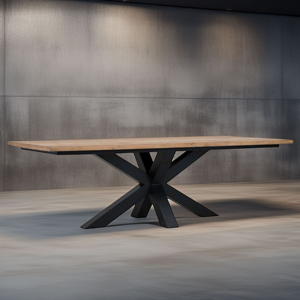 Mesa de Comedor de Estilo Industrial Urbano con Patas de Araña de Hierro con Recubrimiento de Polvo Negro, Estilo Agresivo para Exteriores y Sala de Estar