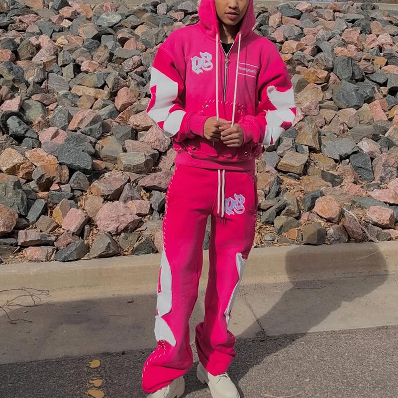 Conjunto Deportivo Urbano con Pedrería, Sudadera Holgada y Pantalones Deportivos Acampanados, Ropa Urbana