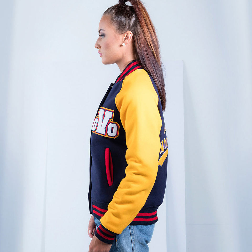Chaqueta de béisbol Urban Style Color Block Diseño universitario de gran tamaño con botones a presión y logotipo frontal