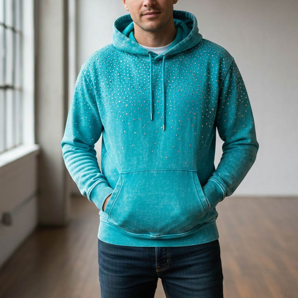 Sudaderas con Pedrería para Hombre, Estilo Urbano, Cómodas y Cálidas, Ideales para la Moda Urbana y la Vida Nocturna