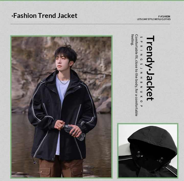 Chaqueta Urbana con Capucha, Cierre de Cremallera, Cuello Alto, Cortavientos, Unisex, Ropa de Calle, Transpirable, Ligera, Informal