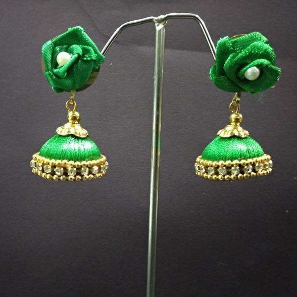 Urthn 1313437D Pendientes de hilo floral étnico Jhumki Pendientes de gota chapados en oro con aleación de material principal de perlas y diamantes