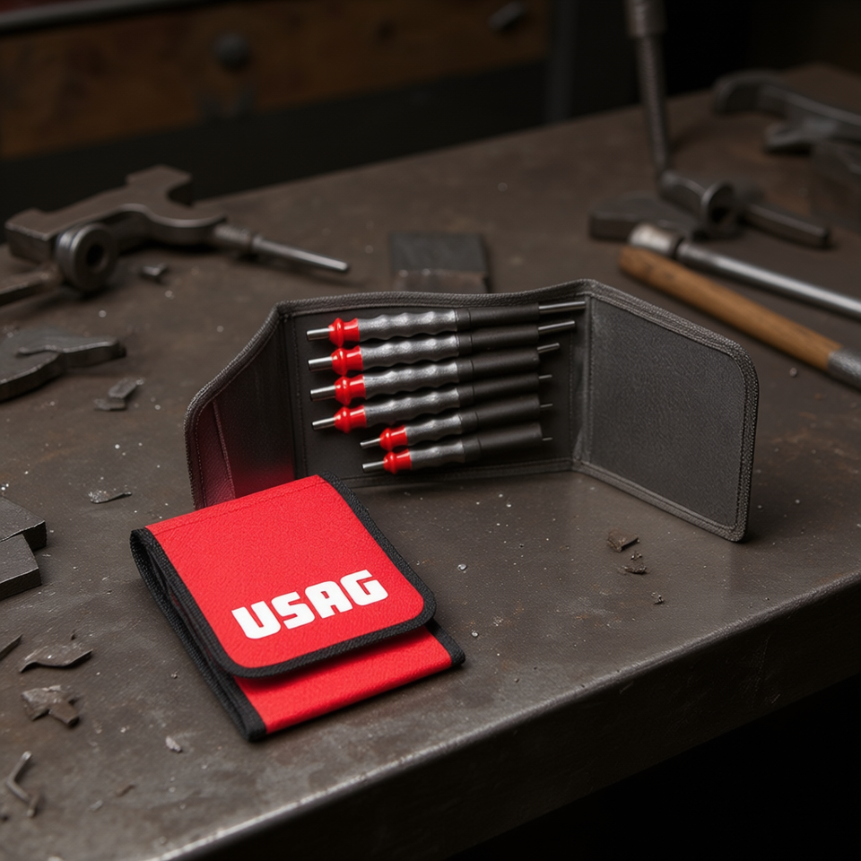 Juego de cinceles Usag de 6 piezas con mango rojo para trabajar metales
