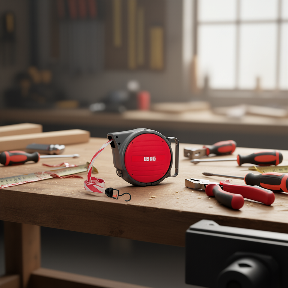Cinta métrica retráctil Usag de 10 m, roja, con gancho para medir