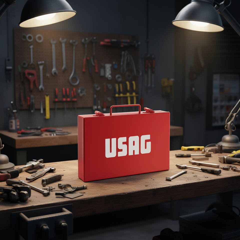 Caja de Herramientas Usag Roja de Metal con Asa para Almacenamiento y Transporte