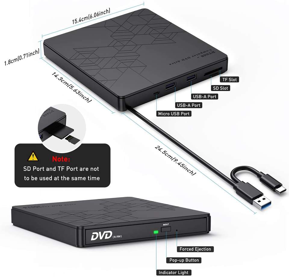Lector de DVD externo Usb, USB 3,0, tipo C, grabadora de quemador de CD-RW, TF, SD, Unidad óptica, CD, DVD, ROM, escritor para PC y portátil