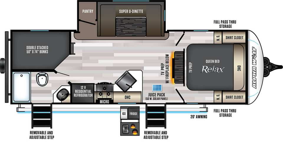 Cama, Cocina, Baño, almacenamiento, Aire acondicionado, Zona de comedor, Sistema de entretenimiento