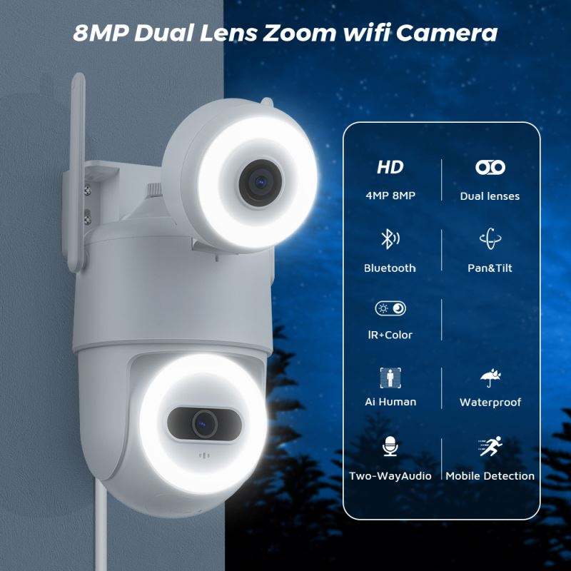 Humanos de seguimiento de movimiento, Visión nocturna, Detección de movimiento, Impermeable / a prueba de mal tiempo, PAN-TILT, De Audio de dos víasCaracterísticas especiales