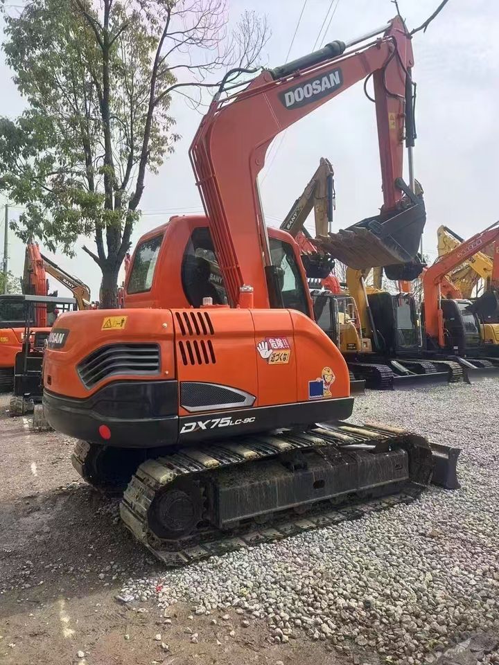 Excavadora de cadenas pequeña Doosan Dx75 de 7.5 toneladas usada, con motor de alta eficiencia certificado por CE y EPA, incluye 1 año de garantía.