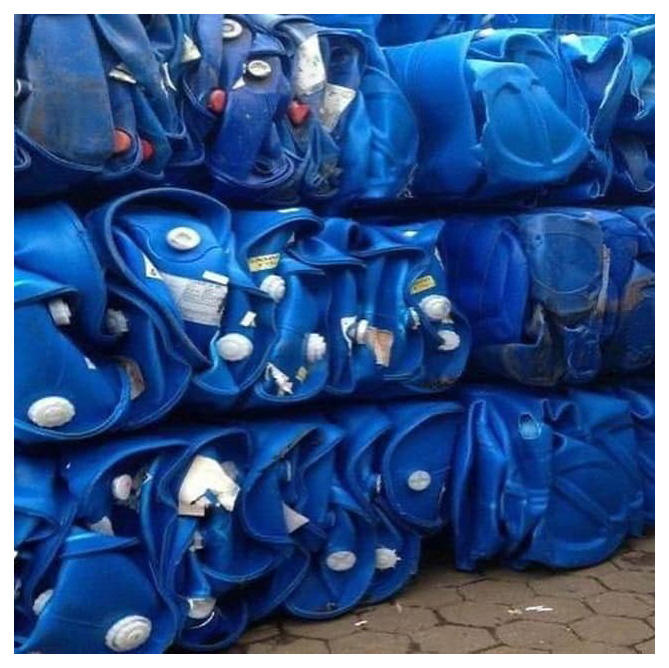 Residuos de bidones de HDPE usados, aptos para moldeo por inyección de extrusión e industrias de producción secundaria de plástico.