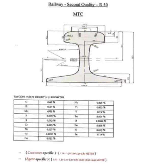 Riel Pesado Usado R50/R65 Grado Superior A, Estándar ASTM, No Aleado, Reciclado Secundario