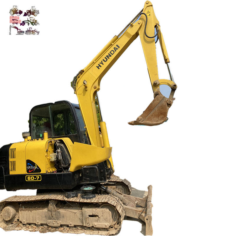 Excavadora de cadenas Hyundai R60 usada de 6 toneladas con motor, caja de cambios, PLC y alta eficiencia en venta