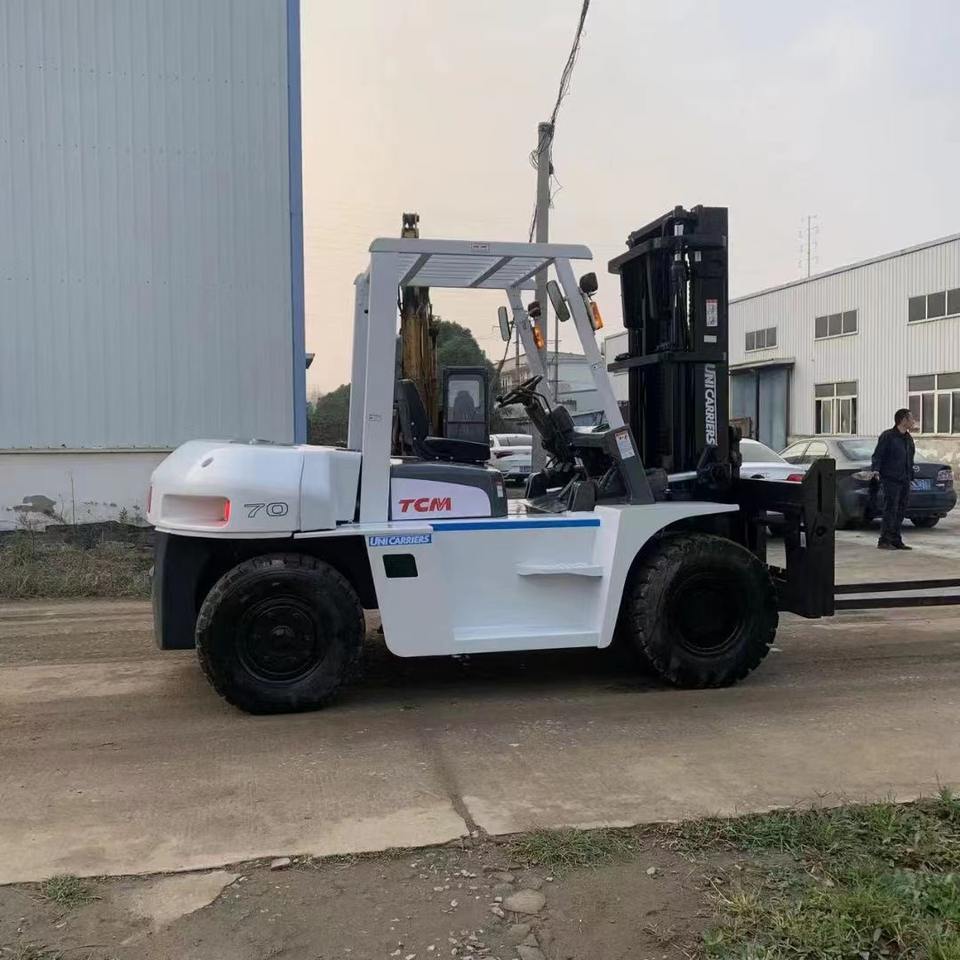Montacargas Usado TCM FD70 de 7 Toneladas, Diésel, Motor Original, Mástil de Tres Etapas, Fabricado en Japón, para Manejo de Materiales en Almacén, Horquillas de 1000 mm