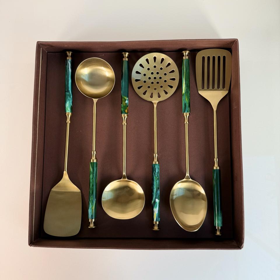 Utensilios de Cocina de Acero Inoxidable con Mango de Resina y Acabado Dorado, Diseño de Lujo para el Hogar, Cocina y Restaurante