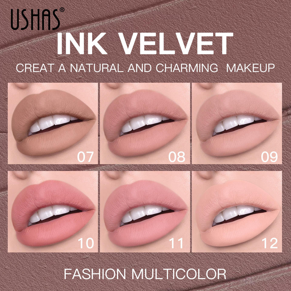 Lápiz labial líquido Ushas Febble Ink Velvet, mate, de larga duración, resistente al agua, antiadherente, tinte labial para maquillaje de mujer.