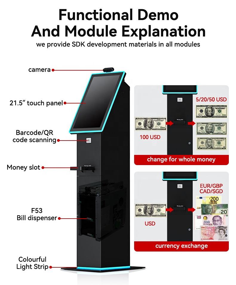 21,5 pulgadas Touch Cash Ticket Redemption Kiosk
