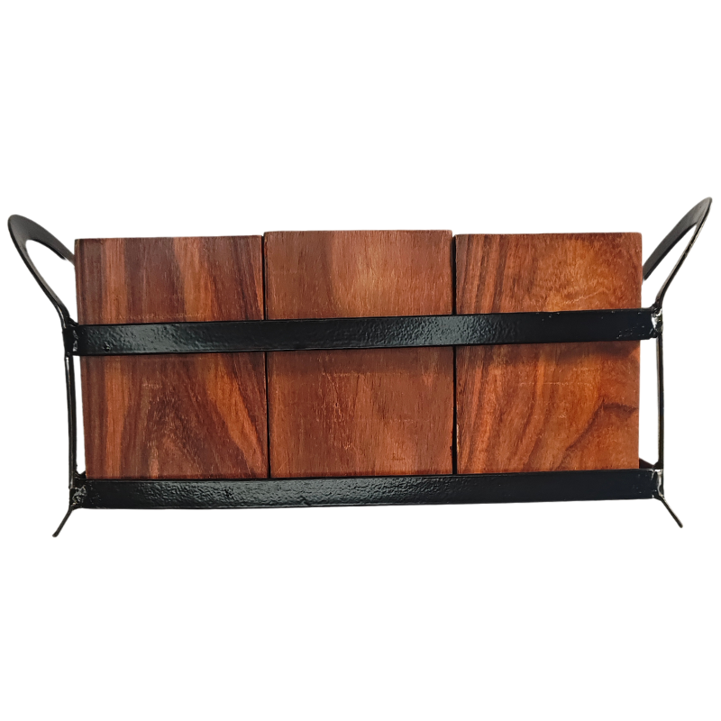Woodensure - Portautensilios de Madera Rústico, Reposacucharas, Clips para Ollas, Marco Metálico de Tres Compartimentos, Ecológico, Apto para Lavavajillas y Microondas