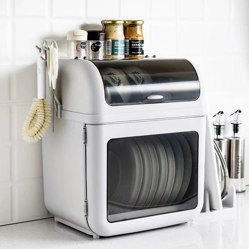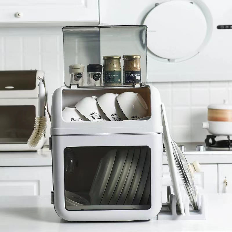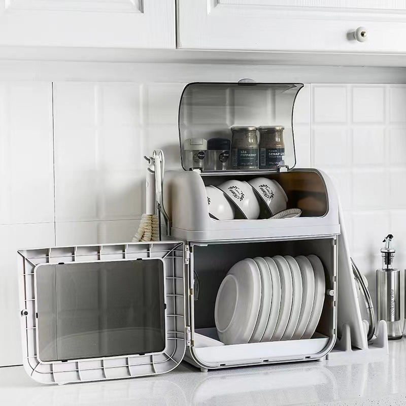 Escurridor de vajilla de plástico para el hogar, estante de almacenamiento de utensilios con cubierta para el hogar