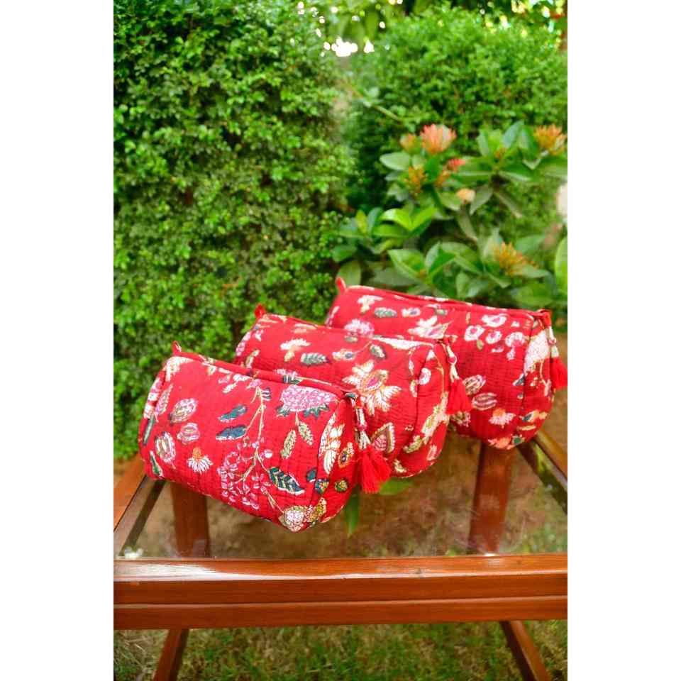 Juego de 3 Bolsas de Cosméticos de Estilo Vintage, Impresas a Mano, con Cierre, Ecológicas, Resistentes al Agua, con Asa Suave, para Viaje, Jaipur