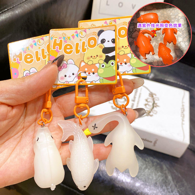 Llavero de PVC con diseño de pato que cambia de color con luz UV, para niños, estudiantes, adorno para mochila, regalo unisex, juguete
