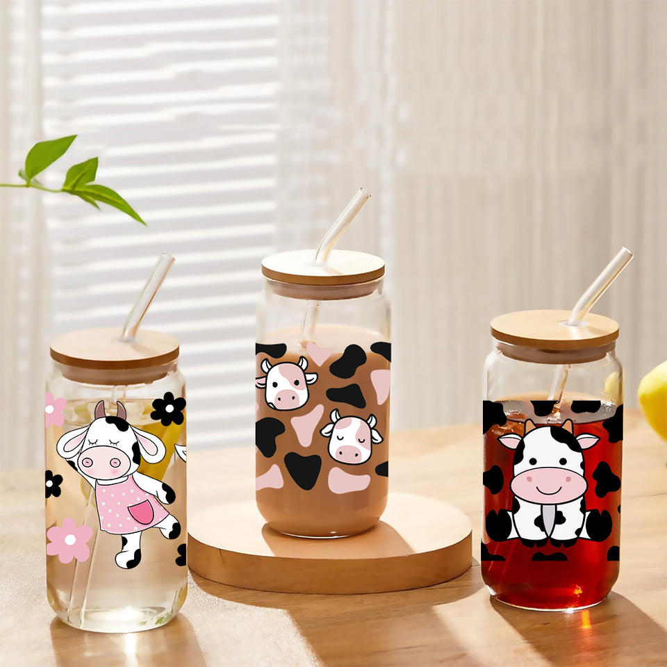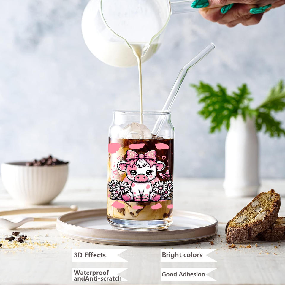 Pegatina de Transferencia UV DTF con Tema de Vaca Cervecera para Vasos Libbey de 16 oz, Envolturas para Vasos, Latas, Manualidades, Impermeable, Fácil de Usar, Calcomanías Personalizadas