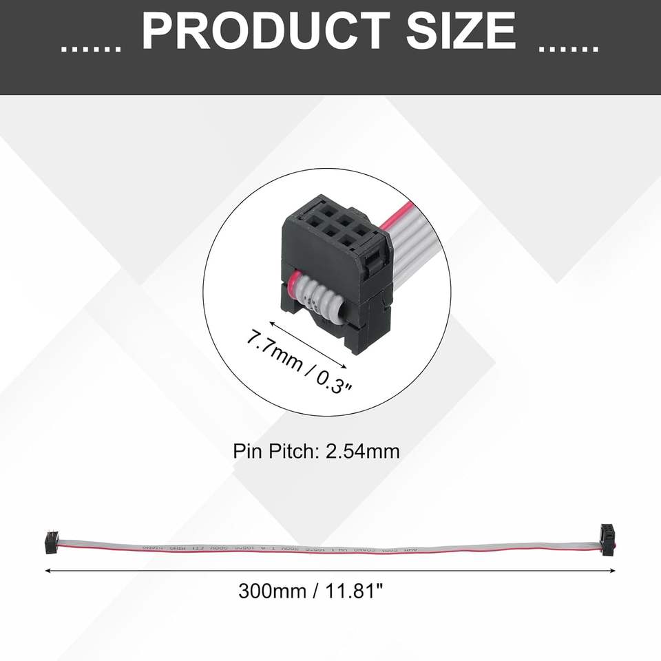 Cable Plano de Plástico Uxcell IDC, 6 Pines, Paso de 2.54 mm, 0.3 m, Gris, Conector FFC FPC