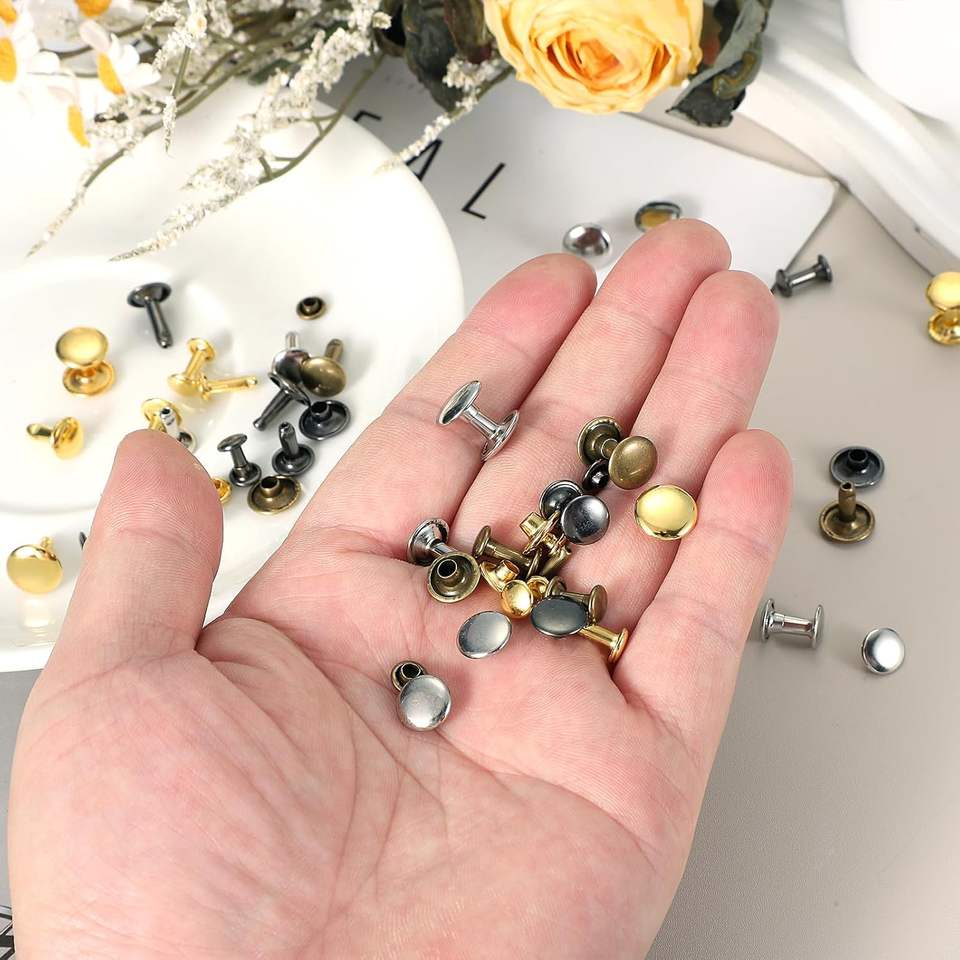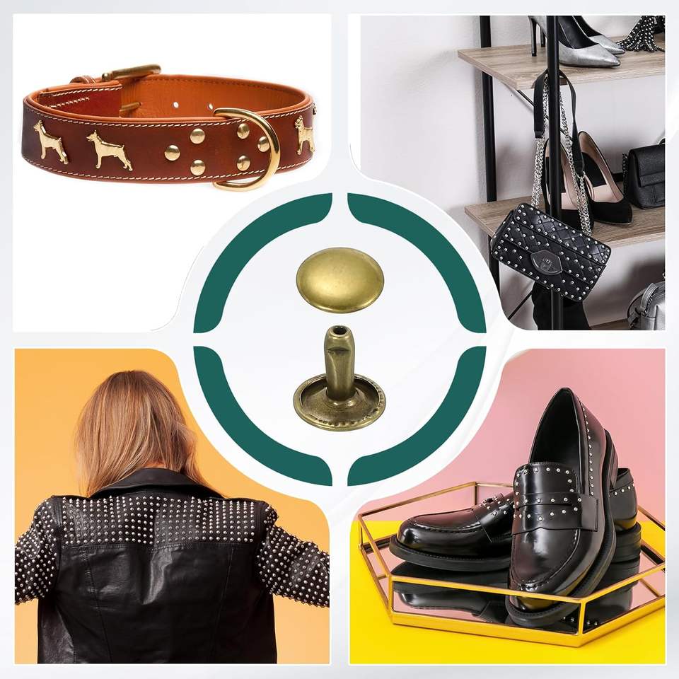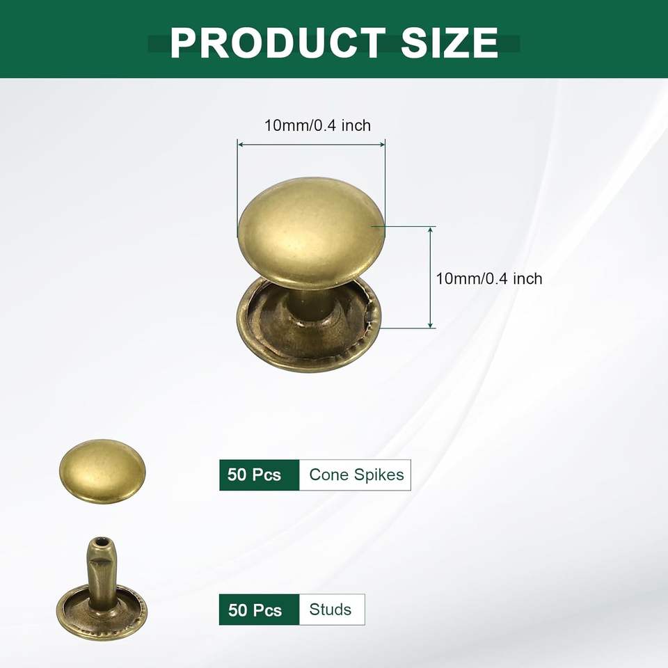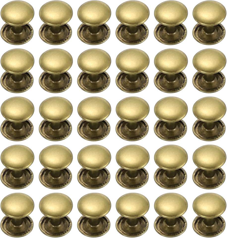 Uxcell Sets Remaches de Cuero de Doble Capa, Remaches Metálicos de Capa Redonda de X mm para Reparación de Cuero, Manualidades, Bolsos, Cinturones, Zapatos, Bronce