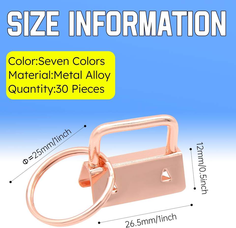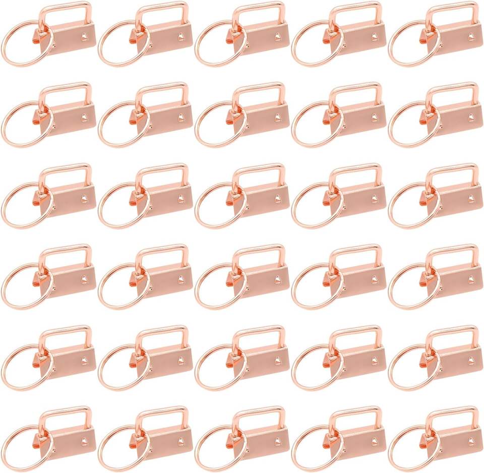Uxney - Abrazaderas de llavero de 1 pulgada en oro rosa con anillas divididas para la fabricación de correas de muñeca, cordones, etiquetas para bolsos y proyectos de bricolaje