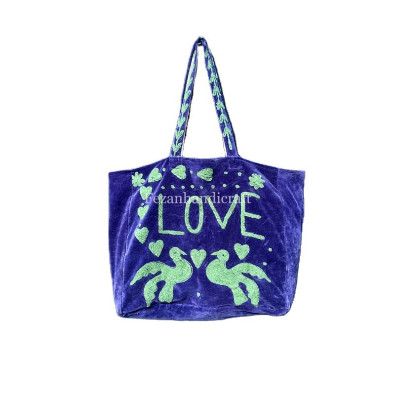 Bolsos de Terciopelo Bordados de Uzbekistán, Bolsos de Compras Grandes Hechos a Mano, Tamaño 18X18, Bolsa de Viaje para Mujer con Bolsillo Interior