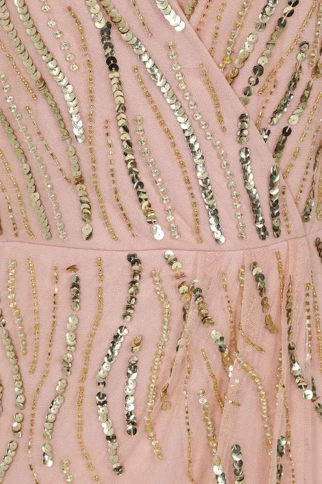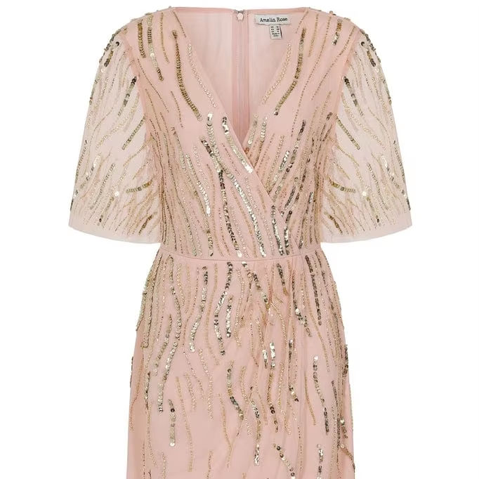 Vestido de baile decorado con cristal de longitud completa con cuello en V, vaina con cuentas de lentejuelas, tela de malla polivinílica, cóctel Formal informal/de fiesta antiestático