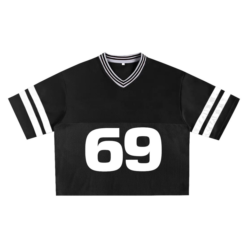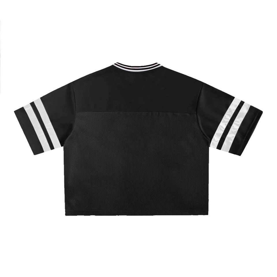 Camiseta de malla con cuello en V de secado rápido, estilo oversize y corte cropped, para uso casual, tipo jersey de béisbol, de tejido de punto.