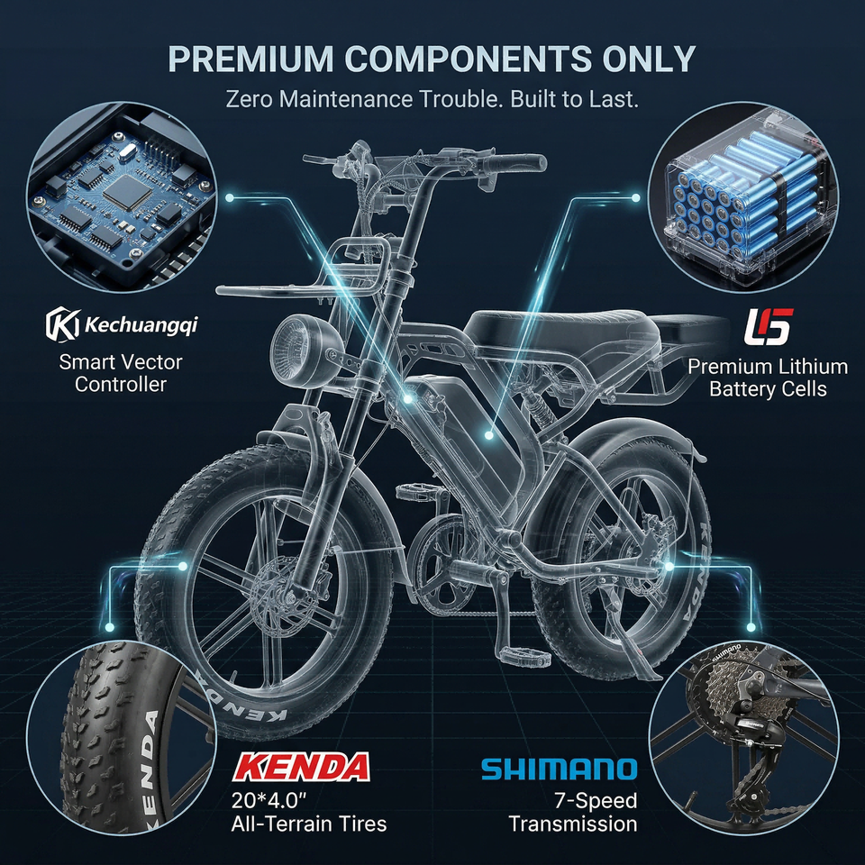 Bicicleta Eléctrica V20 Pro de Alta Calidad con Motor Potente, Neumáticos Anchos, Suspensión Completa, Todoterreno, para Adultos, Bicicleta Eléctrica de Montaña