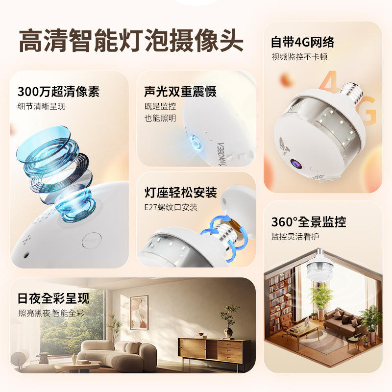 Cámara Bombilla V380 Max, 3MP, Inalámbrica, Panorámica, Seguridad para el Hogar, con Visión Nocturna, Monitoreo de 360 Grados